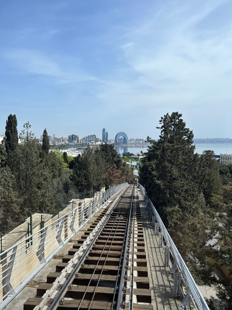 Conecta la Avenida Neftchilar con el callejón de los mártires, la frecuencia del funicular es de 15 minutos, si están en la parte superior tendrás acceso a una sala de espera lujosa y muy bien cuidada, pero si estás esperando en la parte inferior tendrás que hacer fila en la calle ya que no hay sala de espera. El precio por tramo es de 1AZN (aceptan tarjeta) y el recorrido dura aproximadamente 4 minutos. Al costado del funicular hay una senda para subir caminando, son 15minutos en subida.